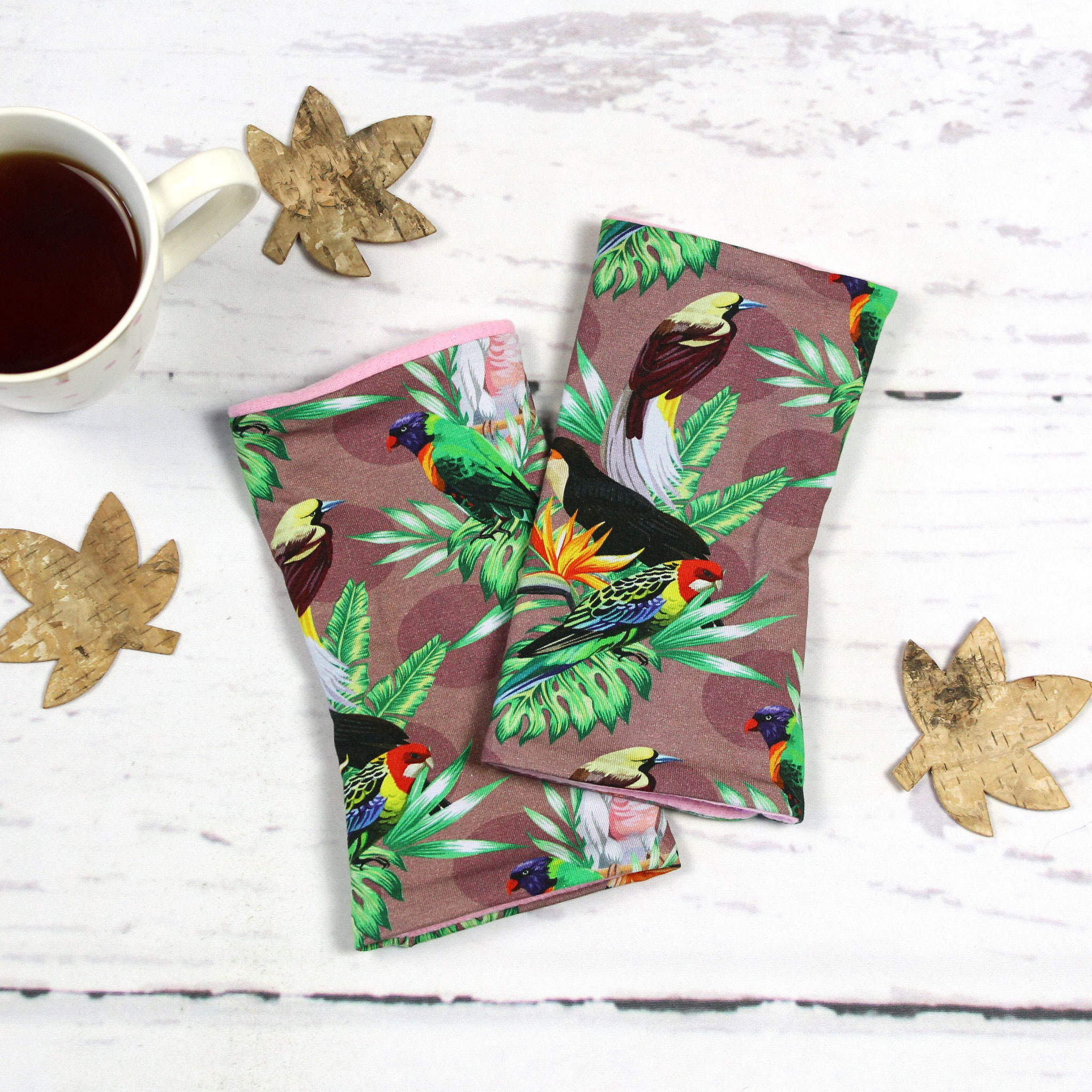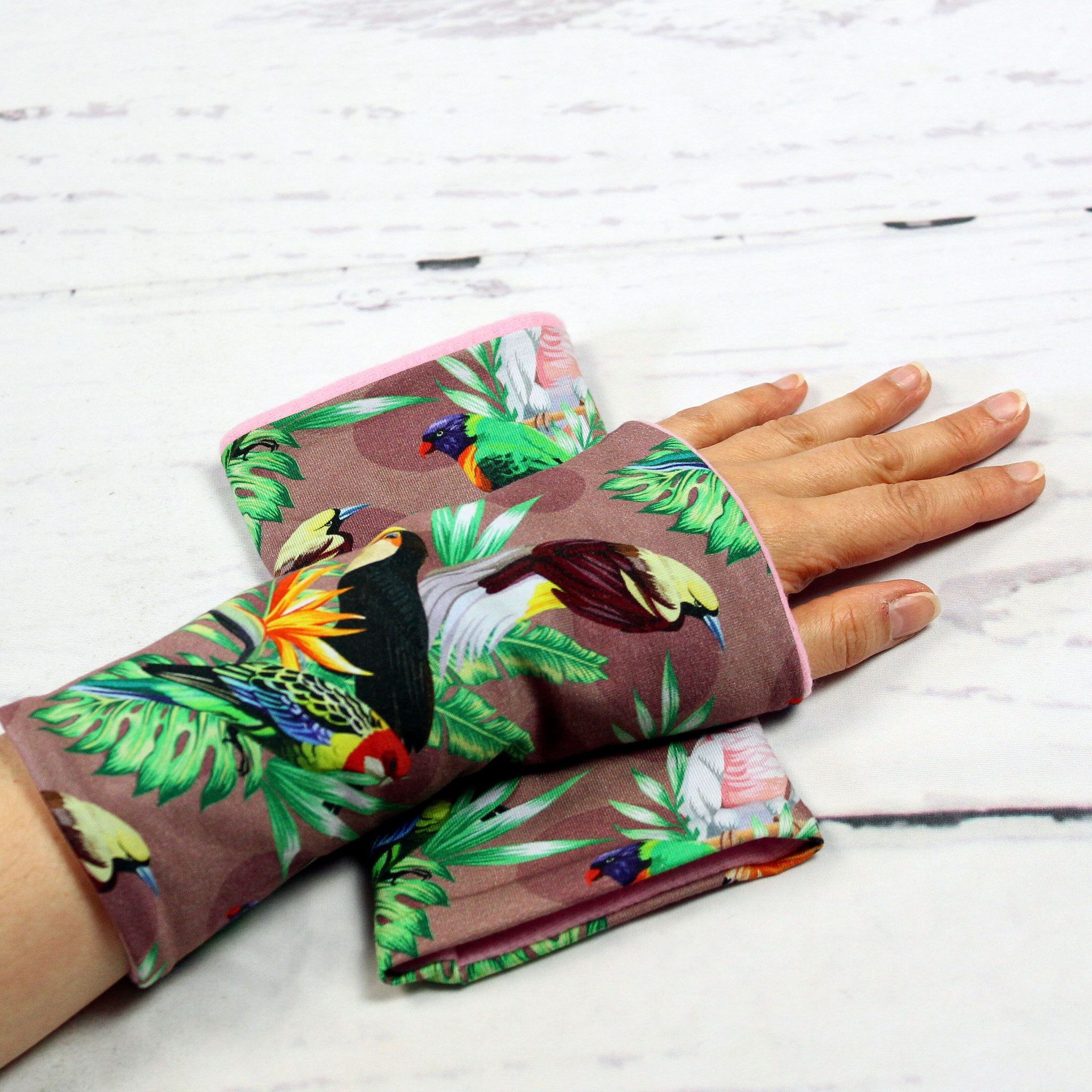 Jersey trifft Fleece - Armstulpen für Damen mit buntem Vogelmotiv, weich & dehnbar