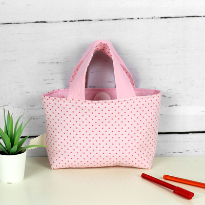 Täschchen umgestülpt, kommt der gepunktete Stoff zur Geltung.