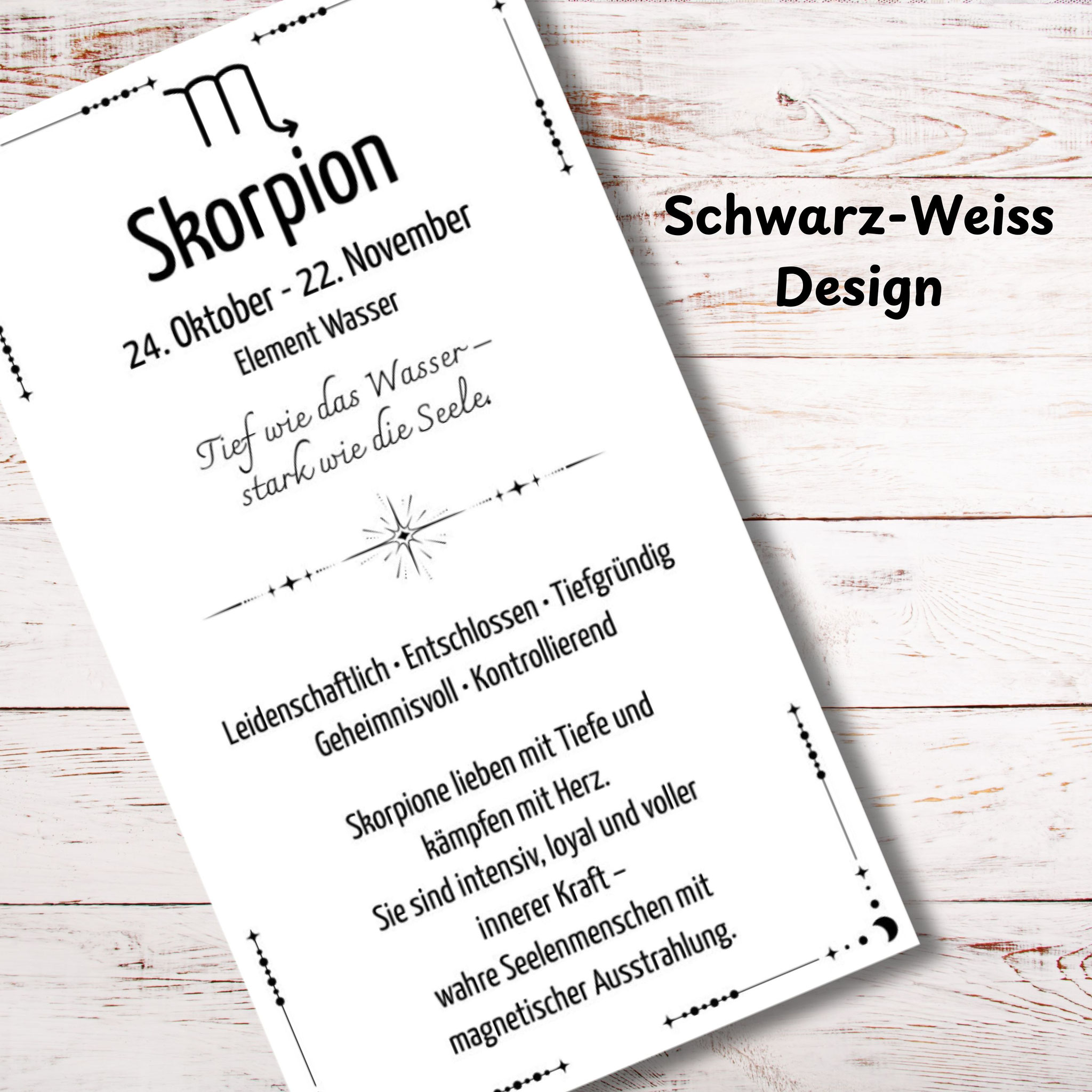 Jede Karte zeigt die Bedeutung des jeweiligen Sternzeichens, ergänzt durch ein passendes Zitat und eine Beschreibung. Damit hast du sofort eine individuelle Vorlage, die du vielseitig nutzen kannst – ob als kleine Beigabe zu einem Geschenk, als dekoratives Element oder als Ergänzung zu deinen eigenen kreativen Produkten.