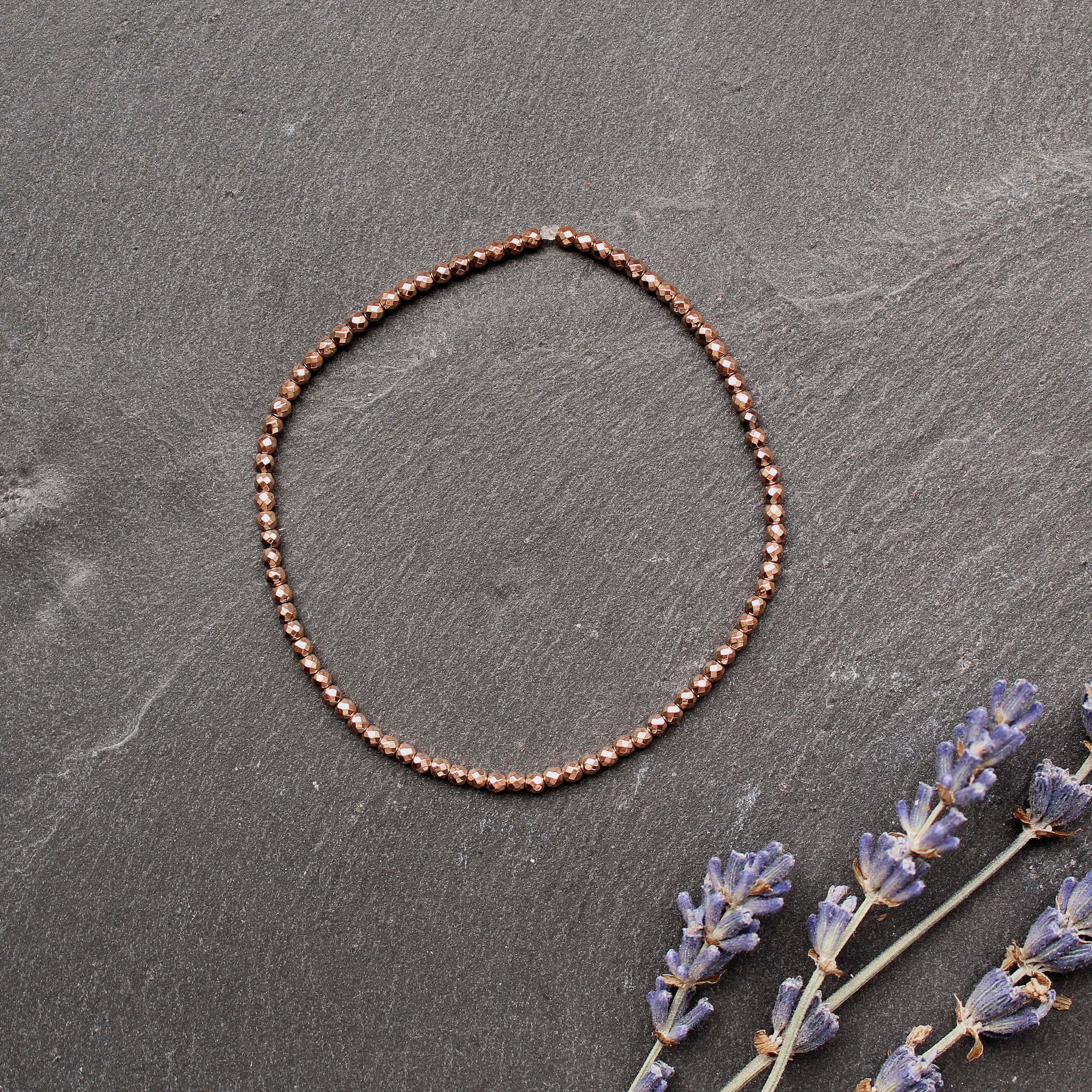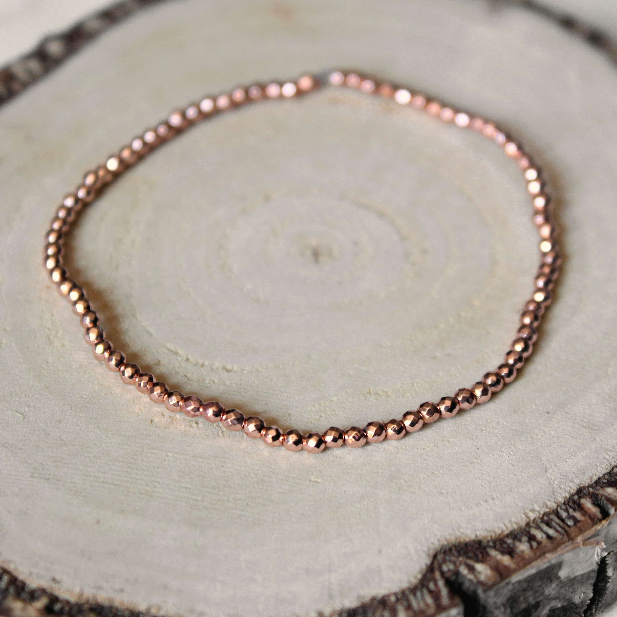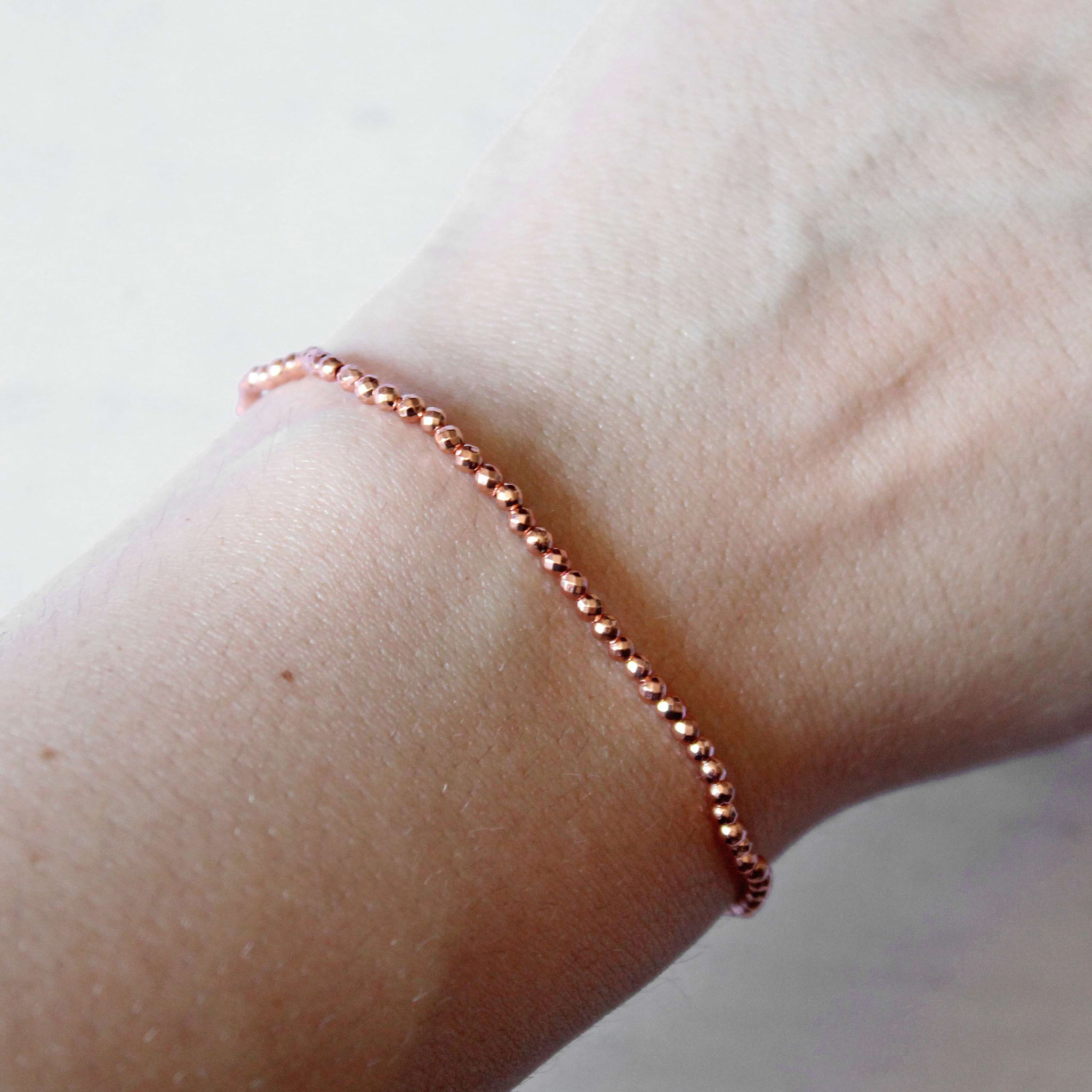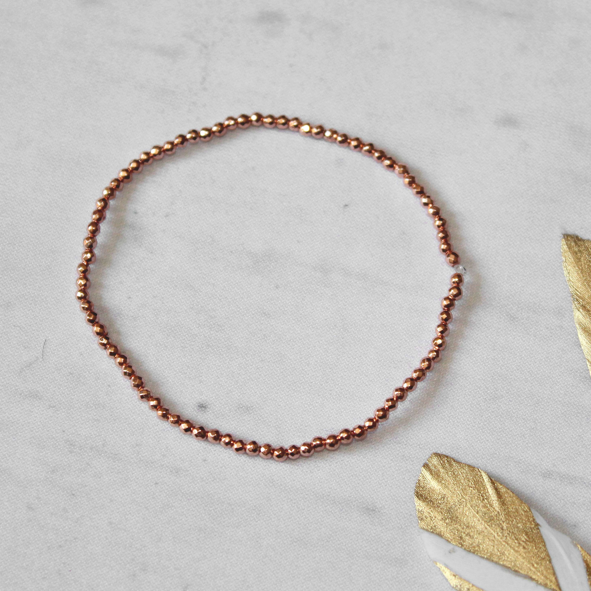 Dehnbares Armband aus kleinen Hämatit Perlen in roségold - elegantes und schlichtes Accessoire.